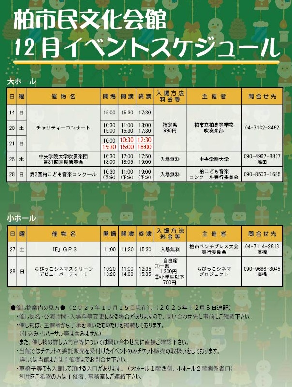 柏市民文化会館 2025年12月イベント案内