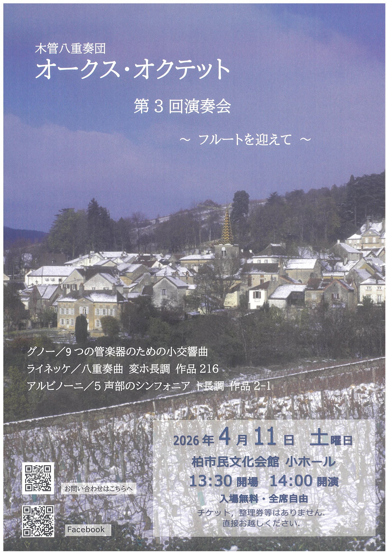 木管八重奏団 オークス・オクテット 第三回演奏会 ~フルートを迎えて~