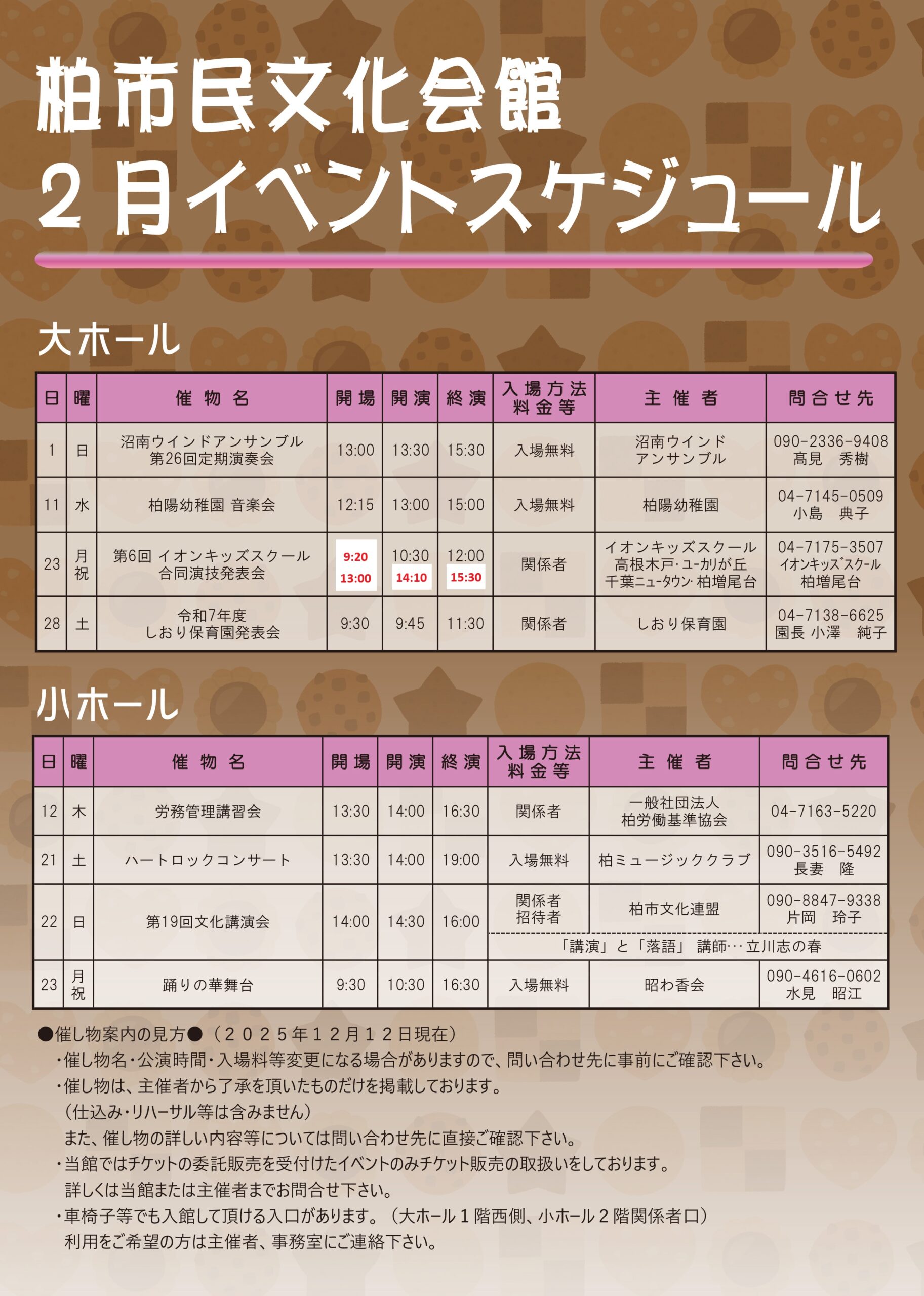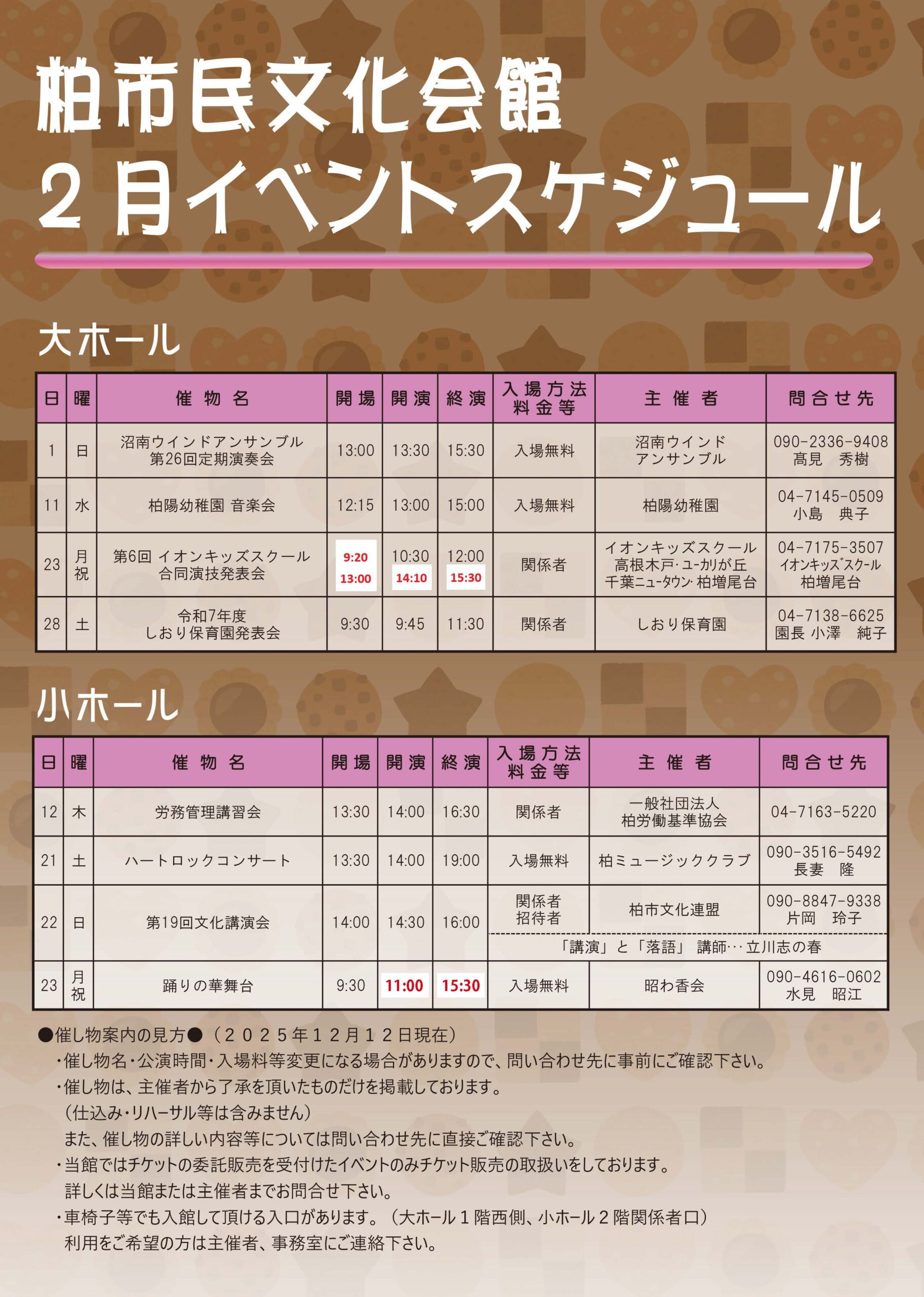 柏市民文化会館 2025年2月イベント案内
