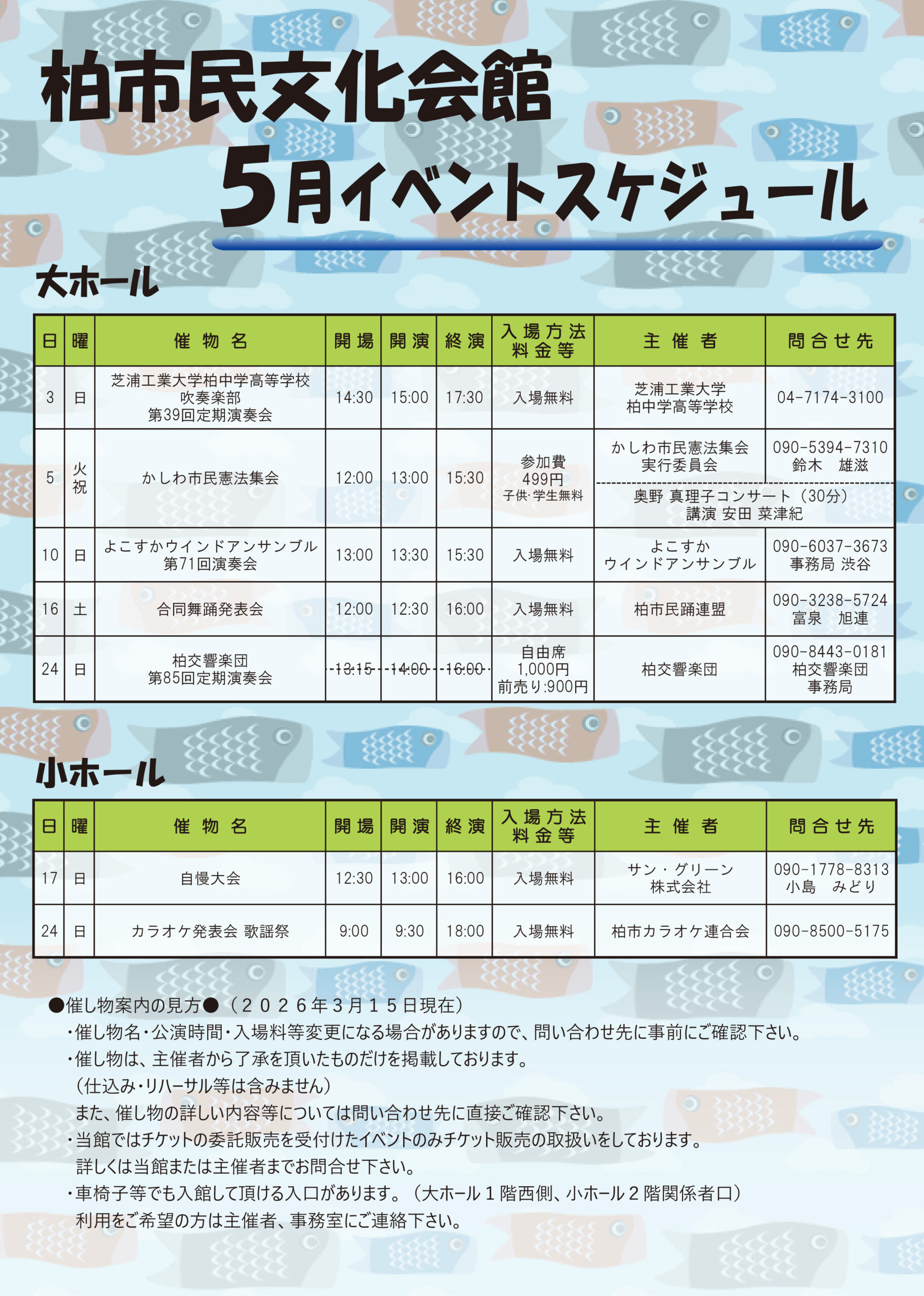 柏市民文化会館 2026年5月イベント案内